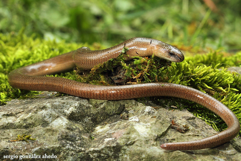 Lagarto sin patas. A diferencia de las serpientes, sus ojos están provistos de parpados móviles y tiene aberturas en los oidos.