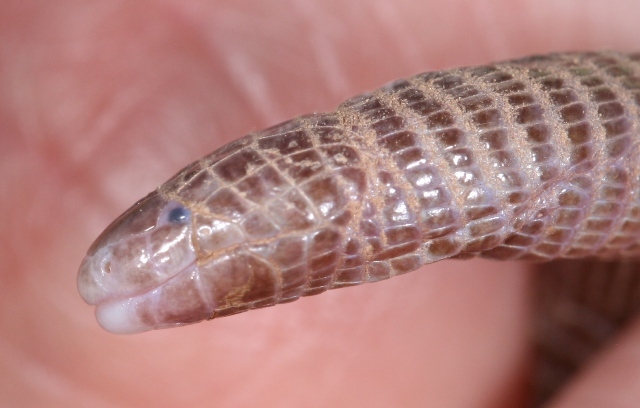 Fisionomía semejante a una lombriz: cuerpo anillado, con escamas cuadriculares, cola muy corta y cabeza pequeña y puntiaguda.