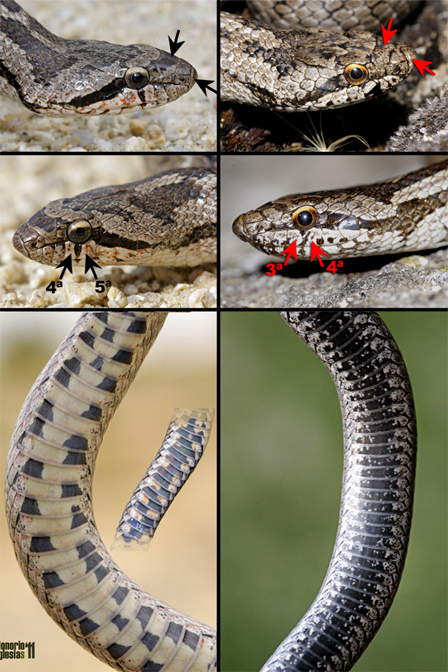 En la región dorsal suele presentar un patrón en zigzag más oscuro que la coloración corporal con el borde más contrastado (posible confusión con la culebra de escalera o con la viperina).