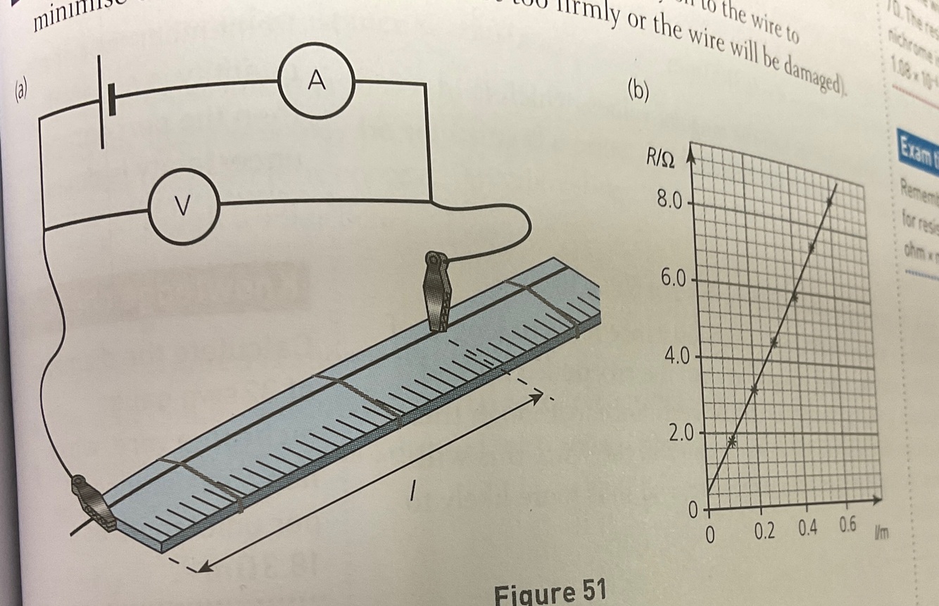 Connect a cell, ammeter in series with a voltmeter in parallel to a length of wire with crocodile clips either end that can be moved