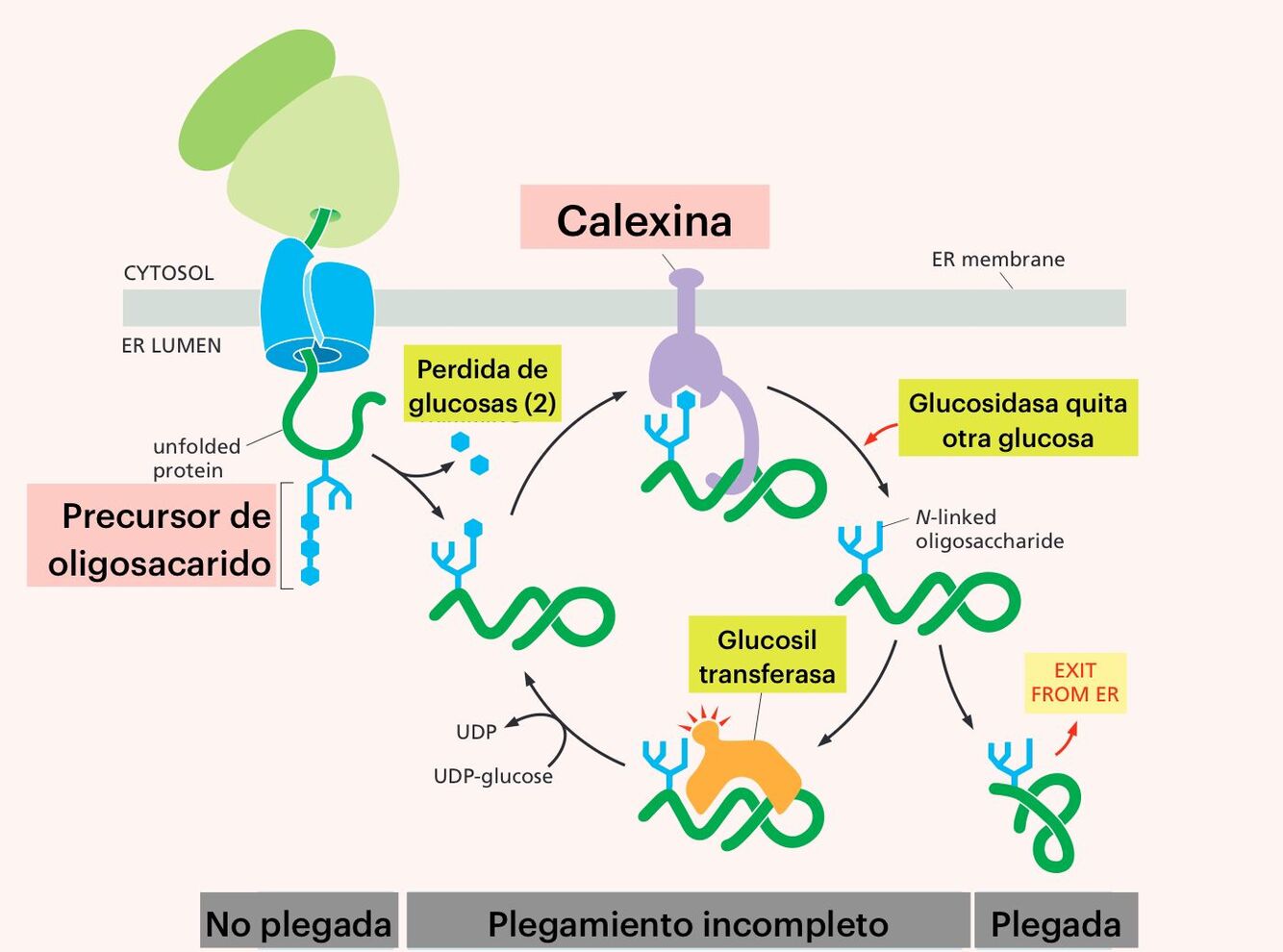 Este proceso no solo ayuda en el plegamiento, sino que también actúa como una señal para el control de calidad, asegurando que solo las proteínas correctamente plegadas avancen en la vía secretora