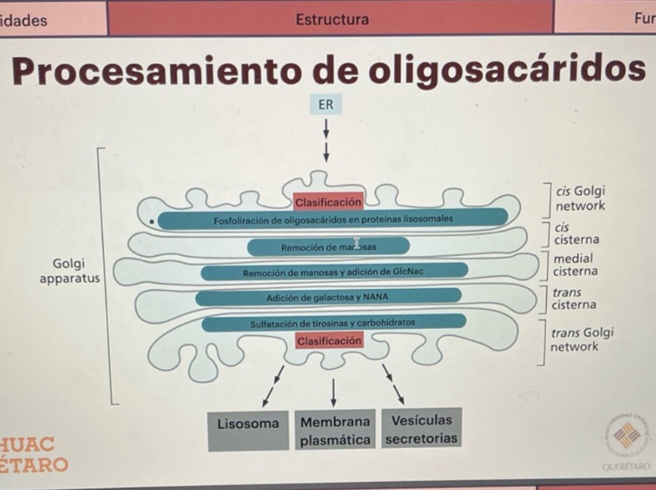 Se agrega un oligosacárido (14 azucares) a la proteína en el RE.