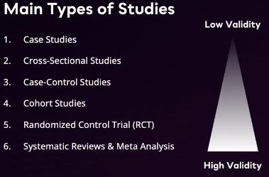 6 main types of studies in order from least to most valid