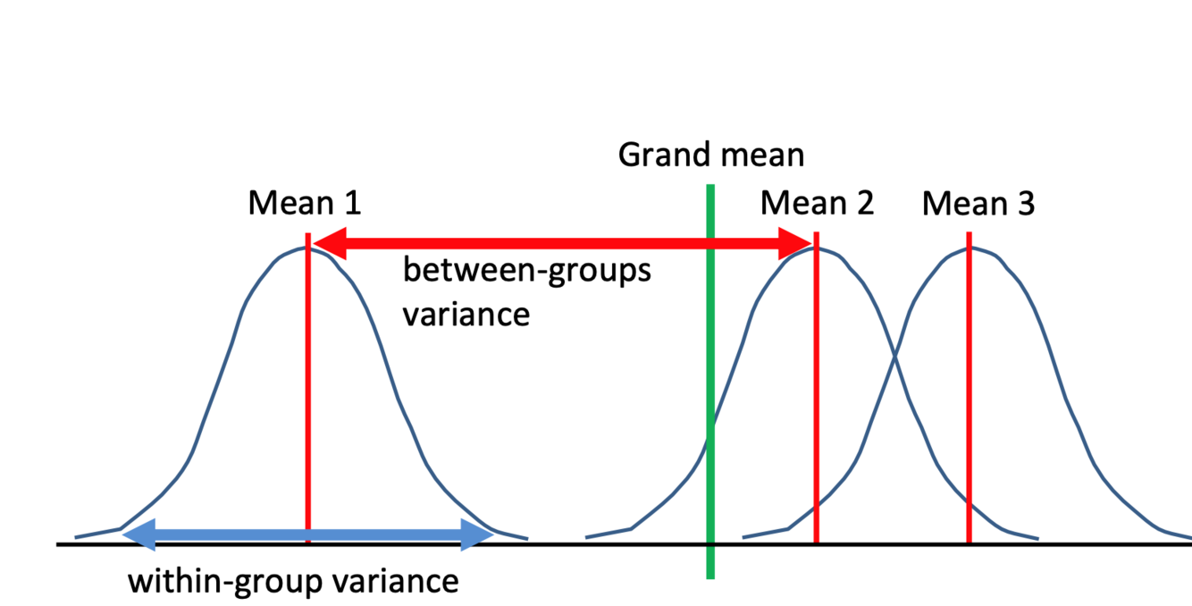 naturally occurring differences (error) ,differences due to a factor that varies for different groups (known as main effects) and the interactions