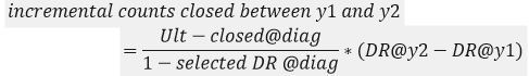 Incremental counts closed between y1 and y2