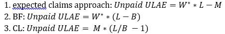 3 ways to estimate unpaid ULAE for group of AYs as of given ultimate claims for same group (L)