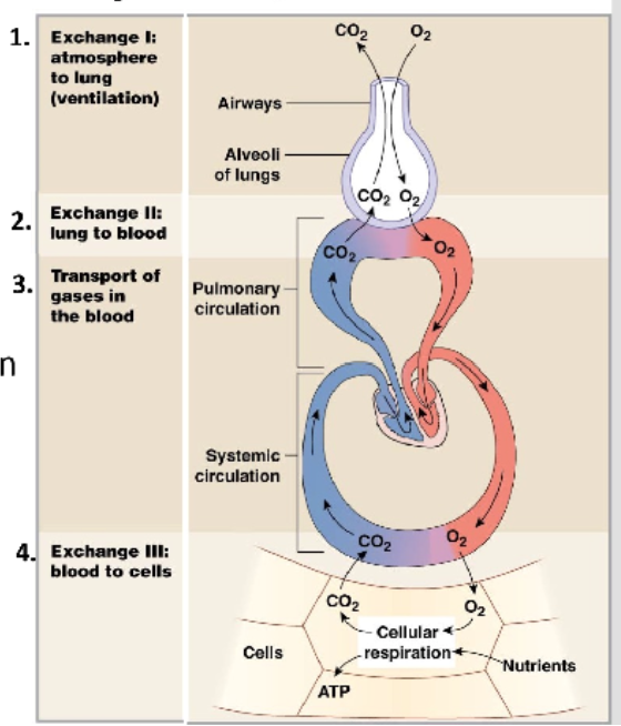 -the respiratory and circulatory systems coordinate to move oxygen and CO2 between the atmosphere and the cells