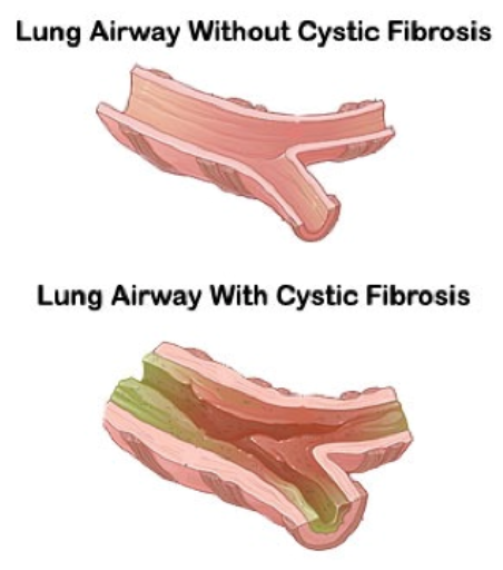 -mucus cannot be cleared properly allowing bacteria to colonize in the airways leading to reoccurring lung infections
