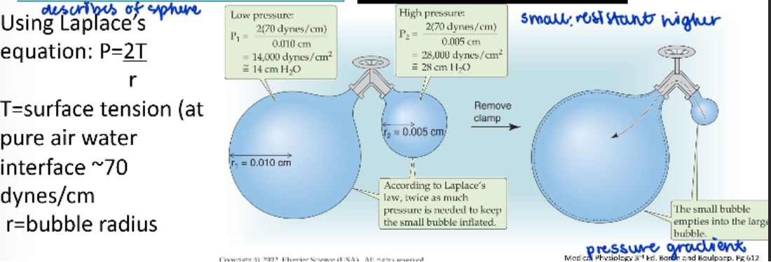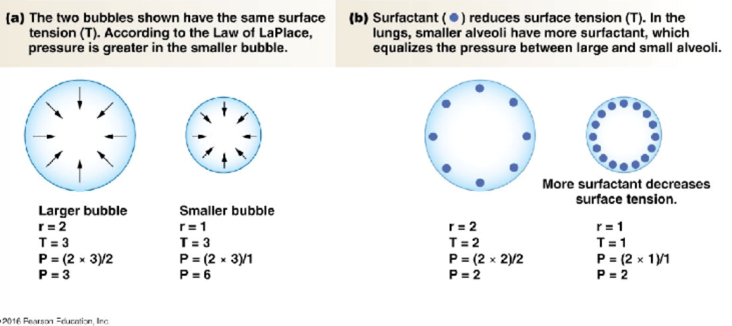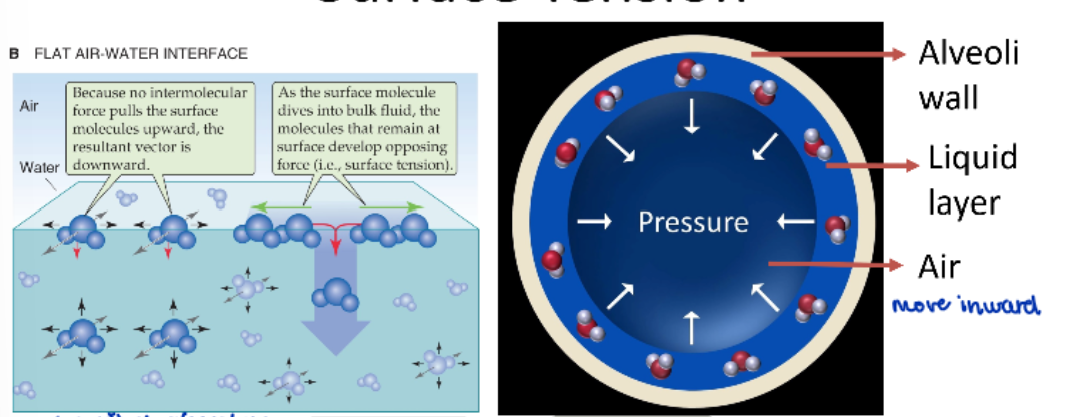what is the graph of how surface tension creates pressure to the alveoli wall?