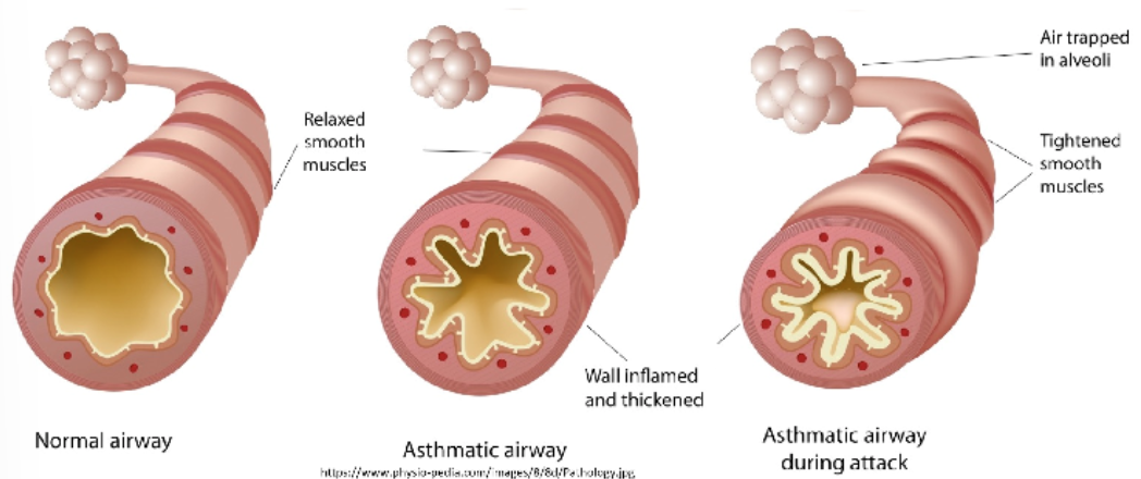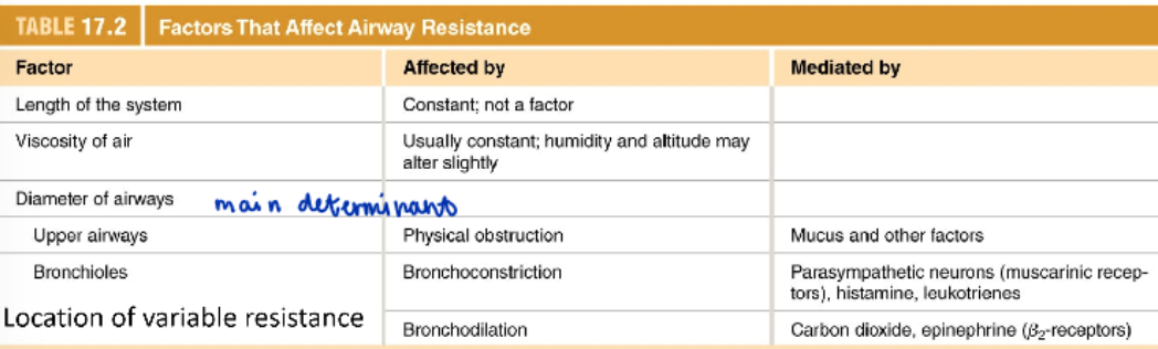 -in healthy individuals 90% of airway resistance occurs in trachea and bronchi and is constant (smallest total cross-sectional area)
