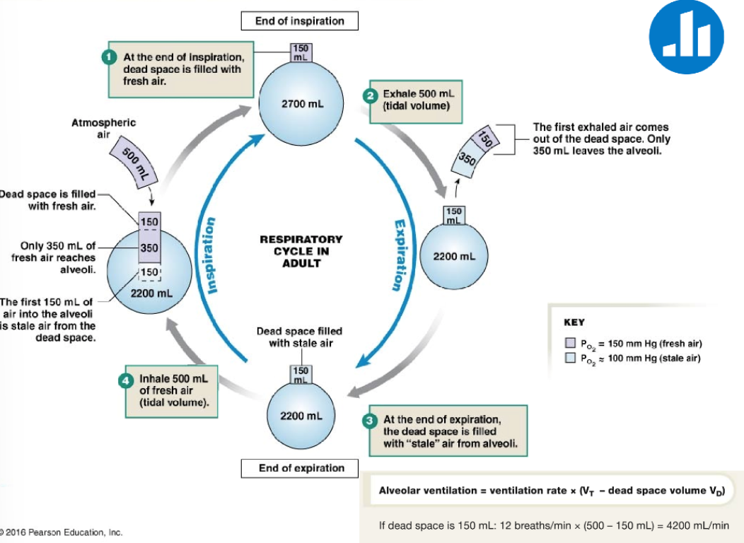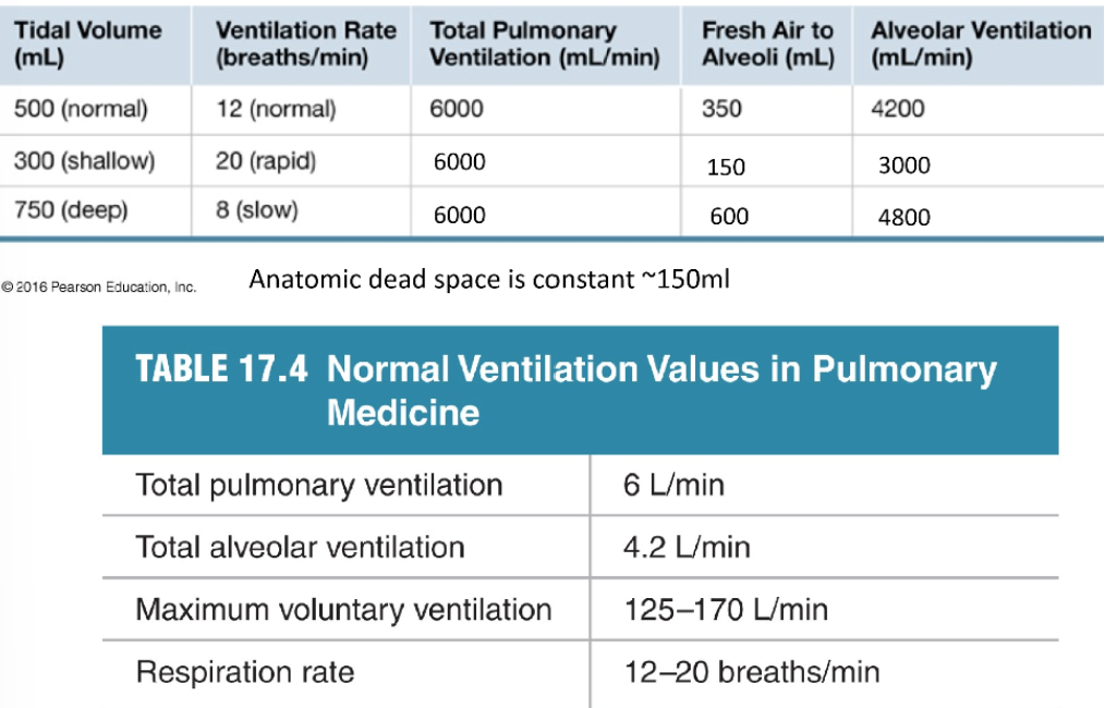 -in respiratory system effectiveness of ventilation is determined by total pulmonary ventilation: the volume of air moved into and out of the lungs each minute (minute ventilation)