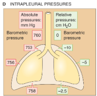 -more negative intrapleural pressure due to gravity at apex means alveoli are partially open and filled even at rest and therefore do not take in much air during ventilation