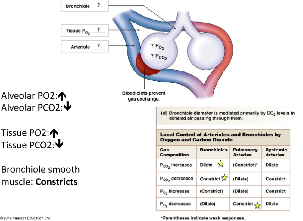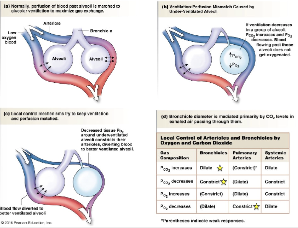 what is the local control of ventilation and perfusion in the pulmonary arterioles?