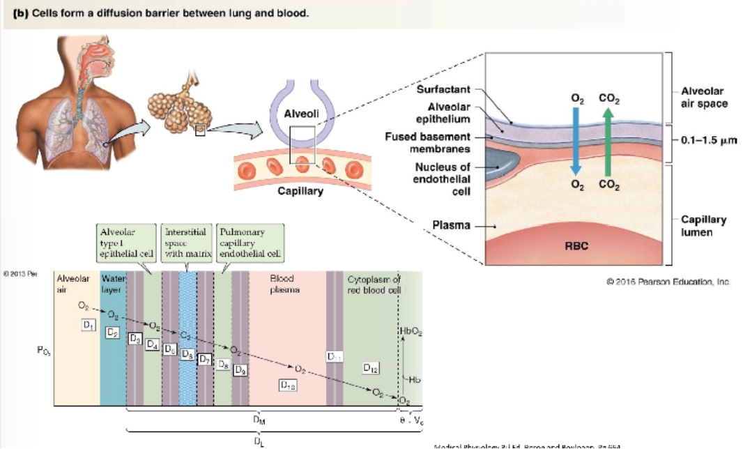 determines rate of O2 and CO2 diffusion between alveoli and capillaries