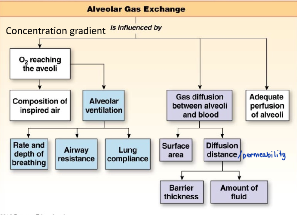 what is going to affect the random movement of gas molecules between the alveoli and capillaries?