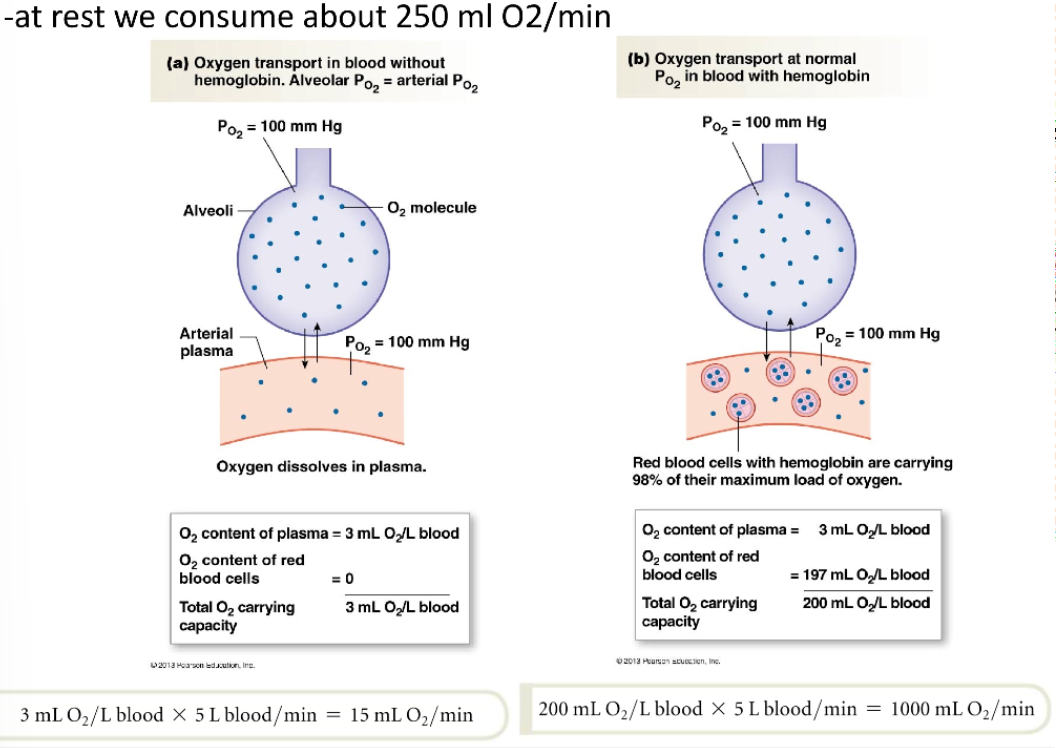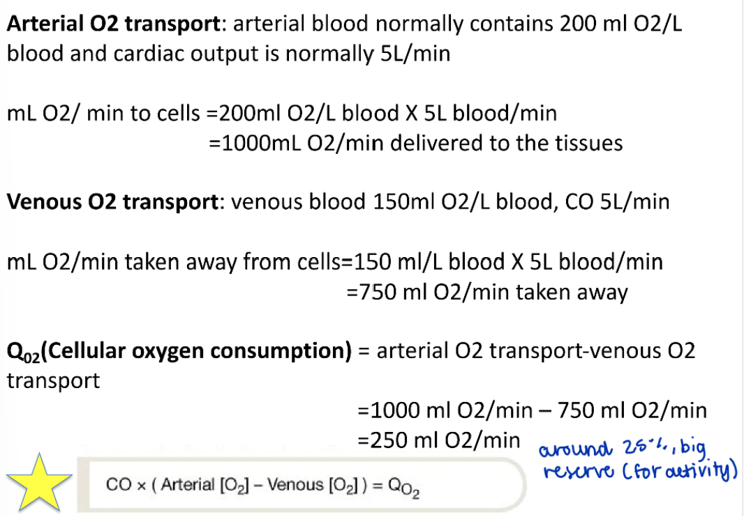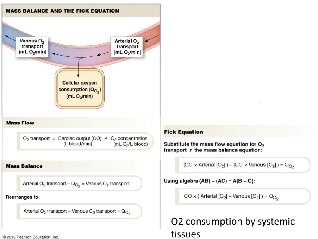 -oxygen transport in circulation and oxygen consumption by tissues illustrate the general principles of mass flow (movement of X per minute) and mass balance (any substance in the body must remain constant)
