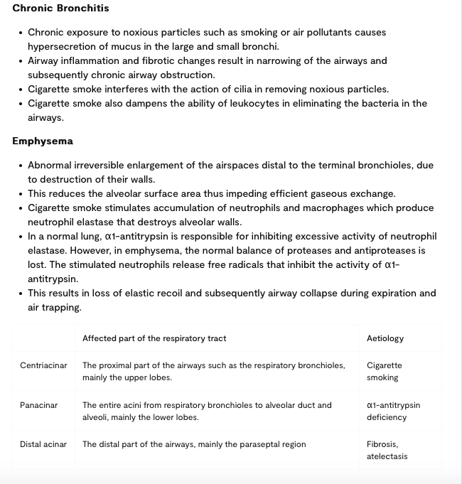 Signs : Accessory muscle use Tachypnoea Hyperinflation Reduced cricosternal distance Reduced chest expansion Hyper-resonant percussion Decreased/quiet breath sounds Wheeze Cyanosis Cor pulmonale (signs of right heart failure)