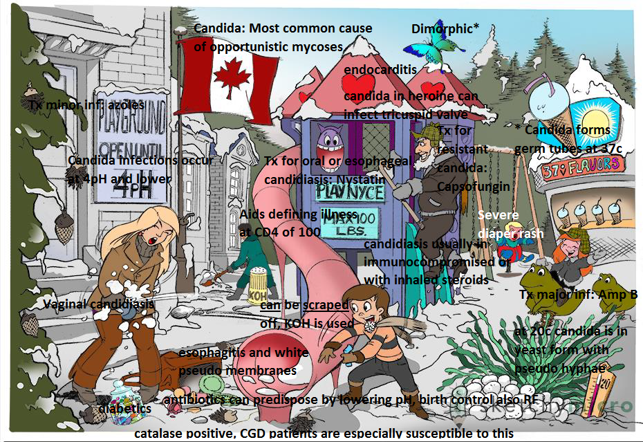 * Candida also catalase (+). Catalase (+) ↑ risk of Chronic Granulomatous Disease (CGD)