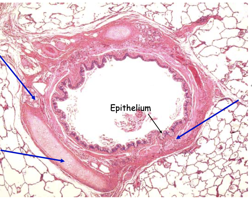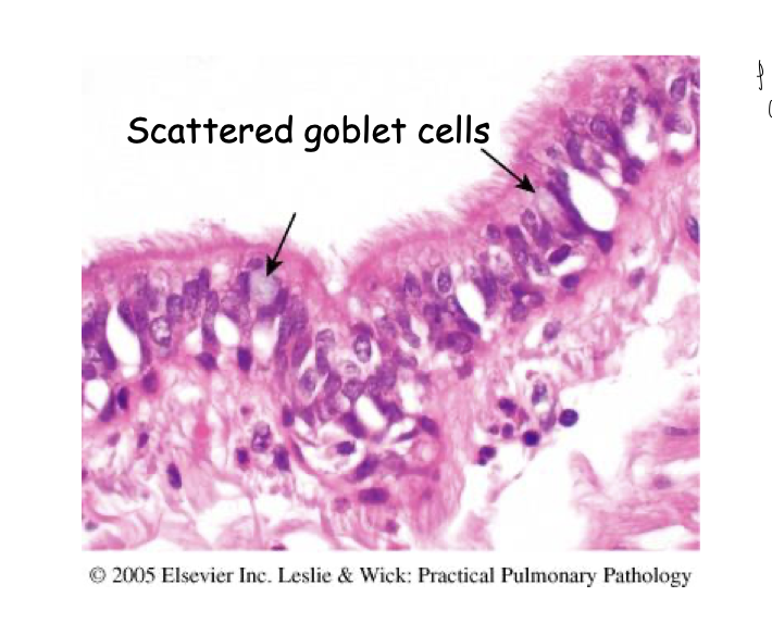 2. panlobular (emphysema); affects entire secondary pulmonary lobule. most pronounces in the lower zones. associated with alpha 1 antitrypsin deficiney.