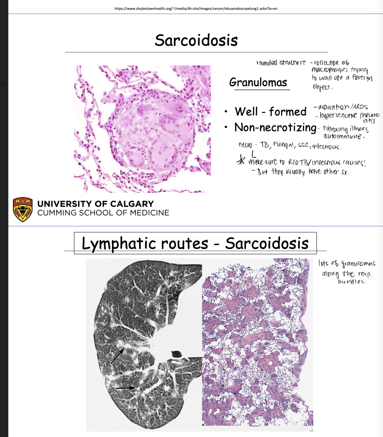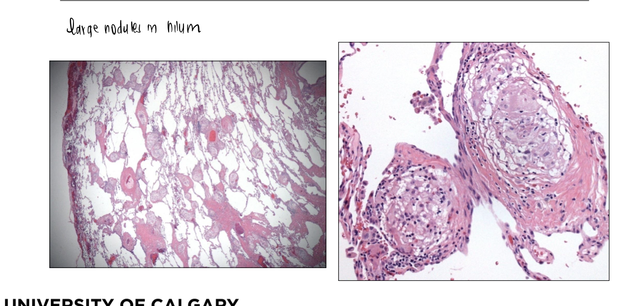 Xray shows bilateral hilar enlargement, and biopsy shows this: