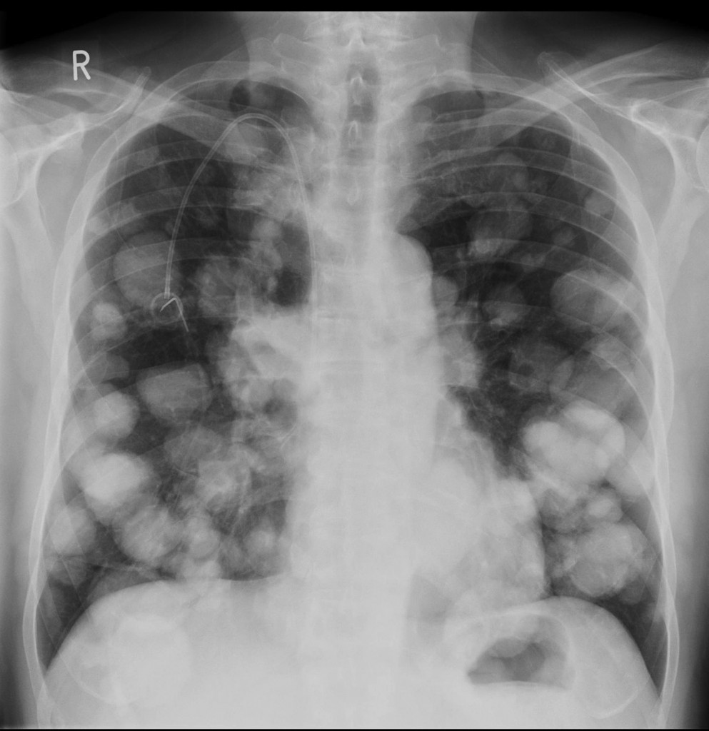 Cannonball metastases (most commonly from renal cell carcinoma)