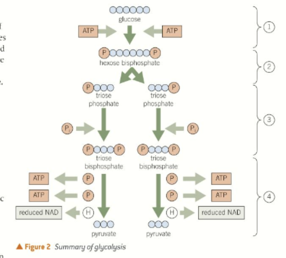 - 2 phosphates released from the 2 ATP molecules are attached to a glucose molecule - forming hexose bisphosphate