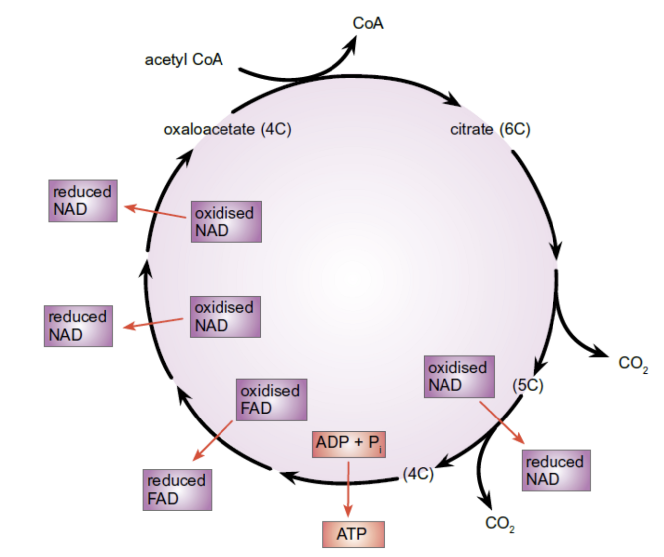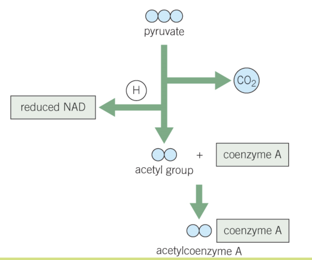 - NAD coenzymes accept the removed hydrogens - they are reduced, forming 2 reduced NAD molecules (NADH)