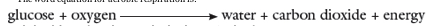 The word equation for anaerobic respiration in muscles is: glucose → lactic acid energy