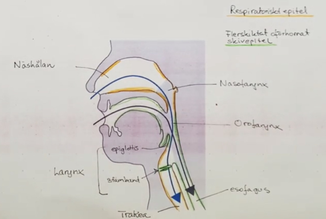 Respiratoriskt epitel eller flerskiktat oförhornat skivepitel