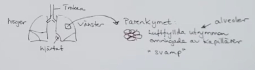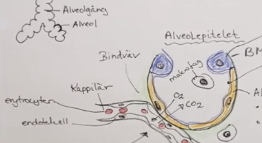 Består av sulfaktant — platt pneumocyt typ I — gemensamt BM — platta endotelceller