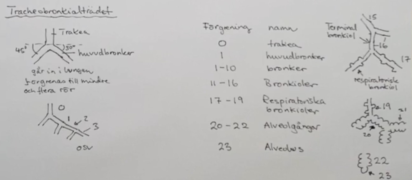 Har alveoler längs rörväggen — transport av luft och deltar i respiration
