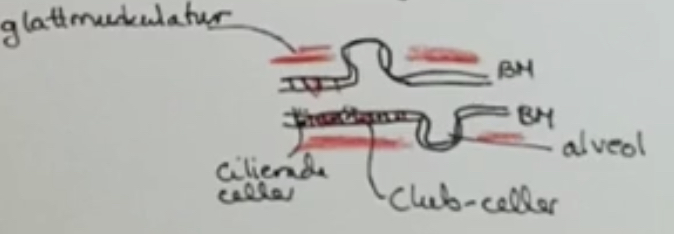 Epitelet är framförallt klubbceller men även kubiskt epitel och cillierade celler