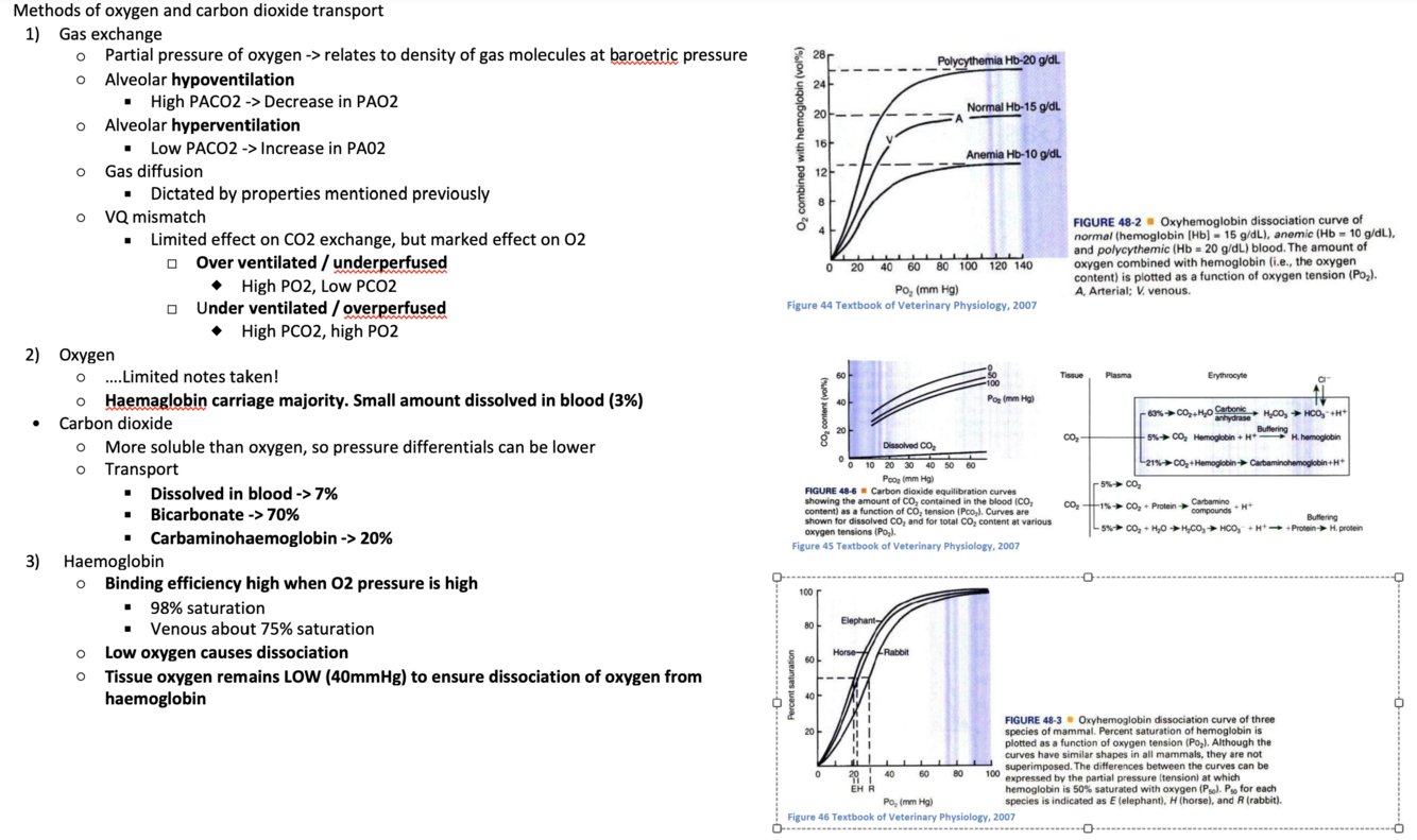 BRIEF details about gas exchange. Explain oxygen dissociation curves