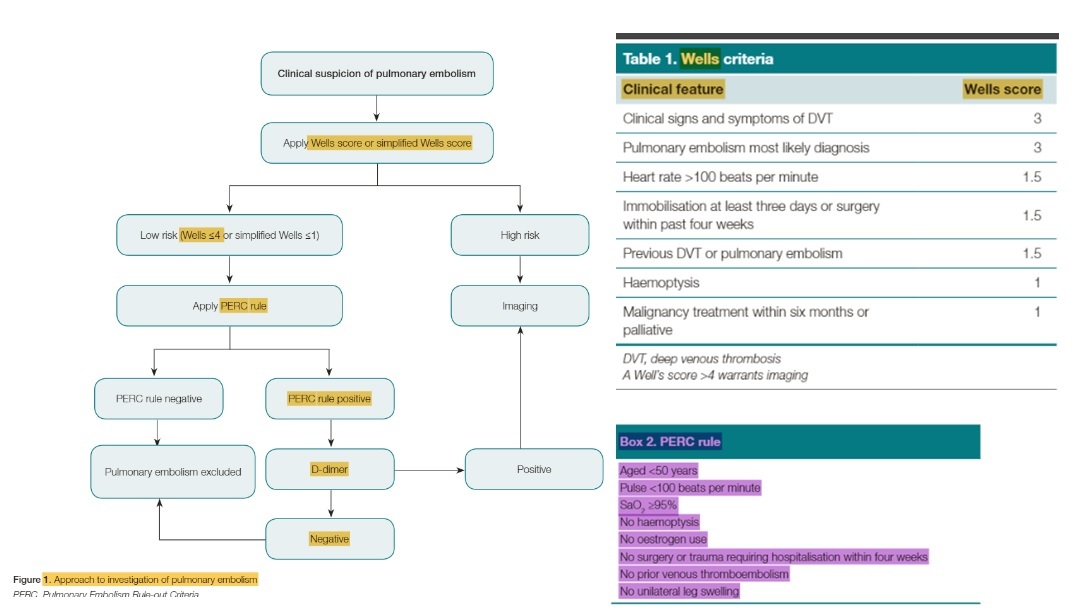 If Wells low risk –> PERC rule –> D-dimer –> imaging