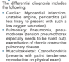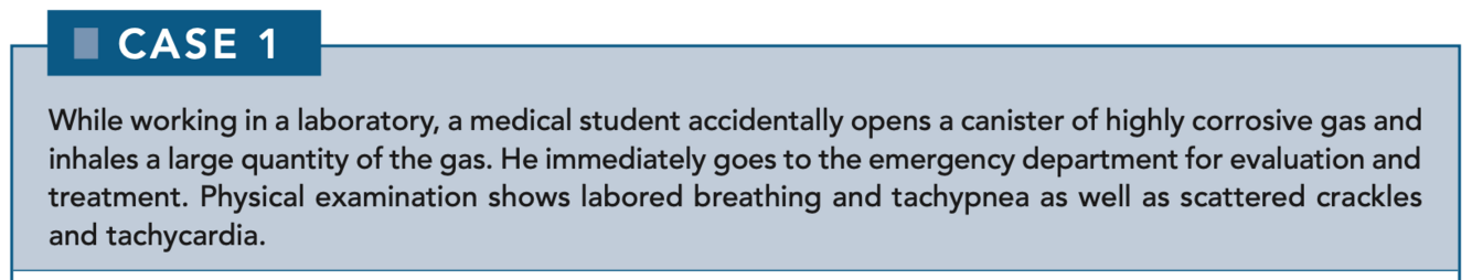 Given this patient’s history, the differential diagnosis should include noncardiogenic pulmonary edema, acute pneumonitis, and acute respiratory distress syndrome. Onset of symptoms may take up to several days depending on the severity of the insult.