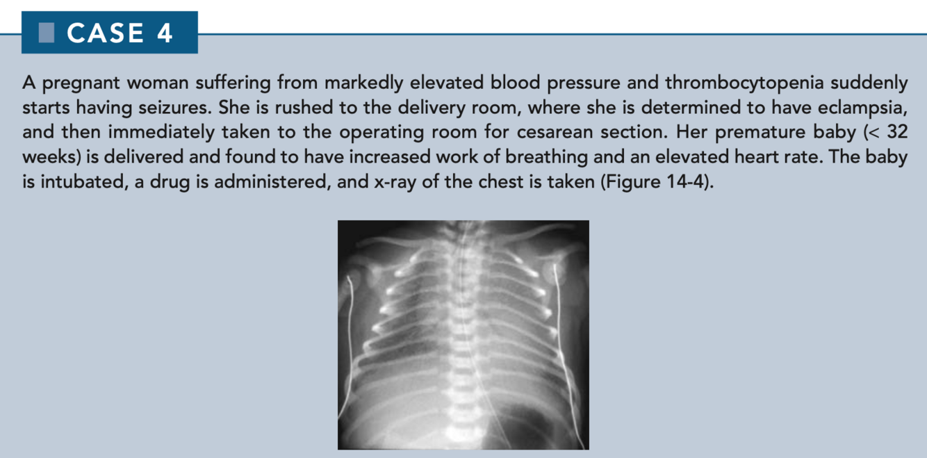 Protein-rich exudate in the alveoli suggests diffuse alveolar damage, which may lead to acute respiratory distress syndrome (ARDS). ARDS is a severe and potentially fatal lung disease in which acute inflammation and progressive parenchymal injury leads to hypoxemia. Typical histological presentation (Figure 14-1) involves diffuse alveolar damage and hyaline membrane formation in the alveolar walls.