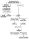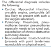 What conditions should be included in the differential diagnosis? If protein-rich exudate is found in the alveoli, what diagnosis is likely and to what condition could it lead?