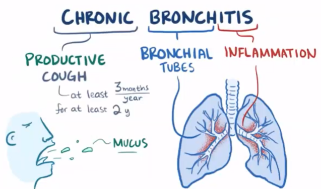 Chronic Bronchitis is a clinical term relating to a chronic productive cough for at least 3 months over 2 consecutive years.