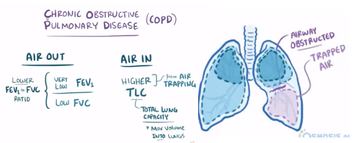In COPD, the airways become obstructed and the lungs don’t empty properly which leaves air trapped inside the lungs.