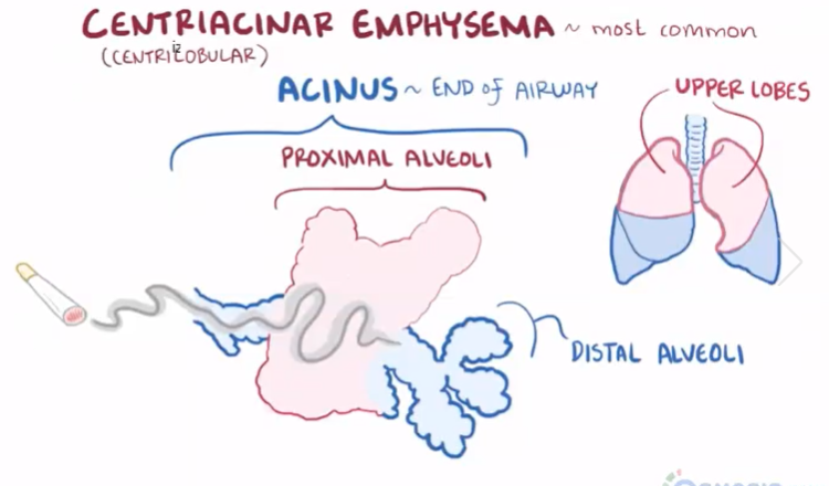 Damage to central/proximal acini due to smoking