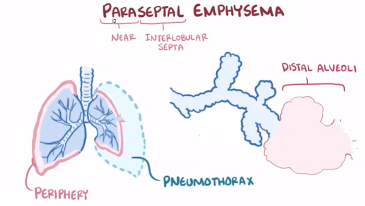 Peripheral ballooned alveoli can rupture causing pneumothorax