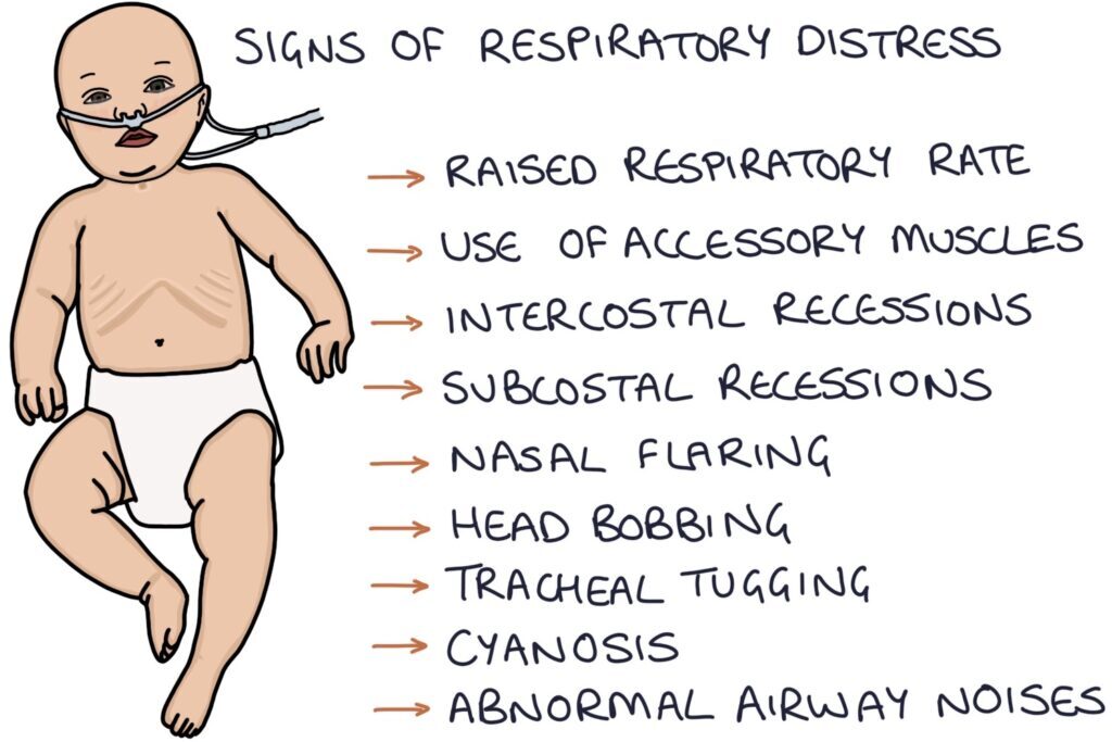 c) high pitched inspiratory noise caused by obstruction of the upper airway, for example in croup.