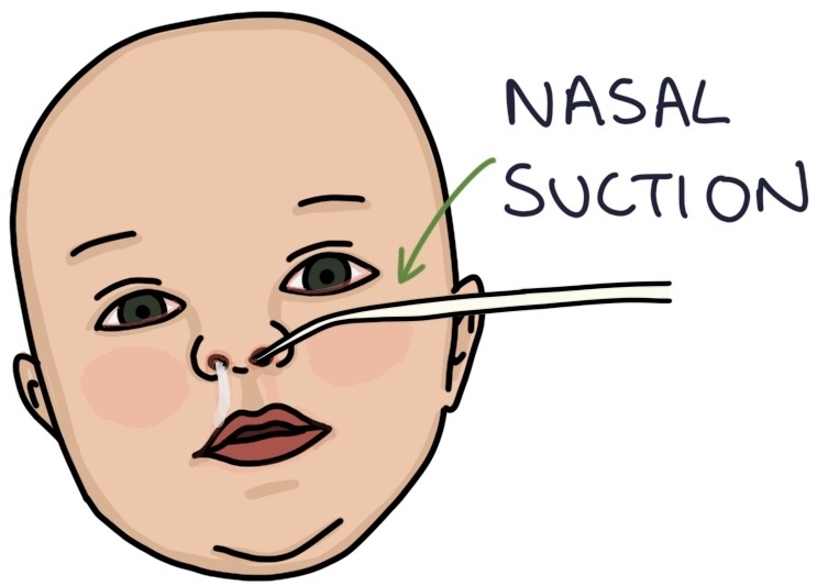 - saline nasal drops and nasal suctioning to clear nasal secretions