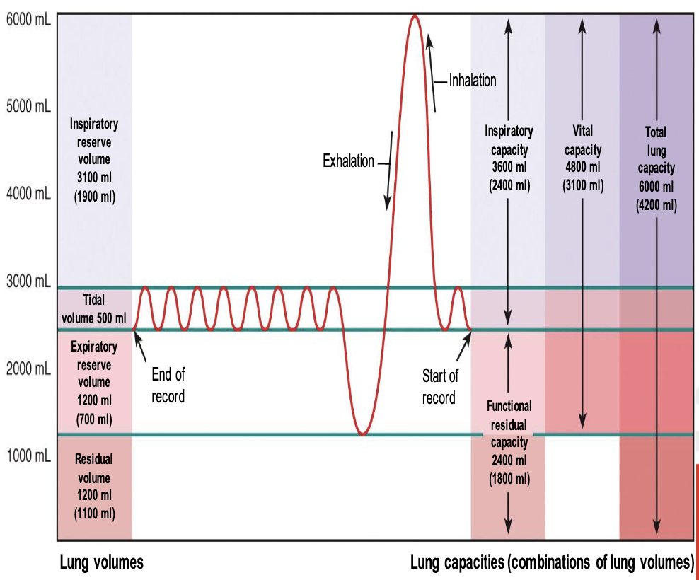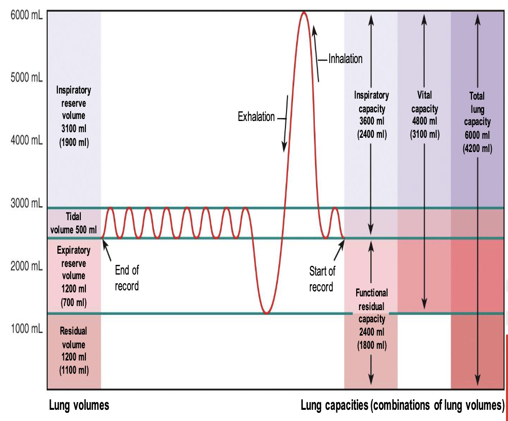 * TLC is about 6000 ml for men, and about 4200 ml for women