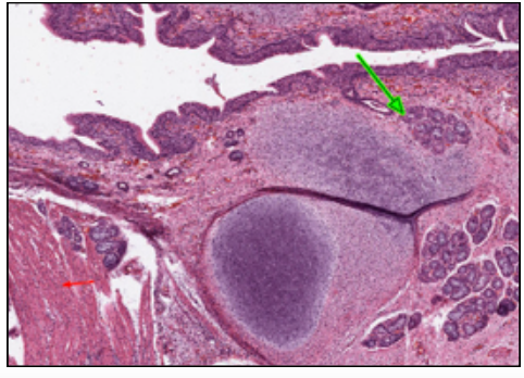 MALT NODULE = no capsule, intimately related to epithelium