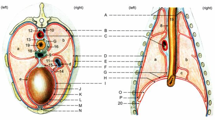 d. Oesophageal hiatus, Pleura, Sternebrae