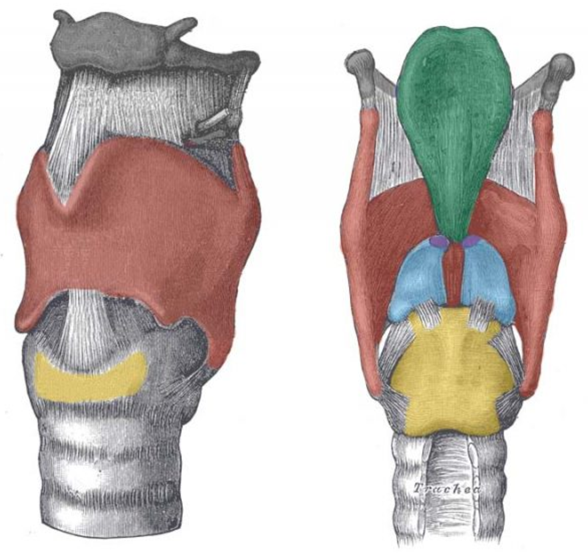 through the crico-thyroid membrane between cricoid and thyroid cartilages