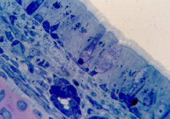 pseudostratefied, ciliated columnar epithelium with goblet cells