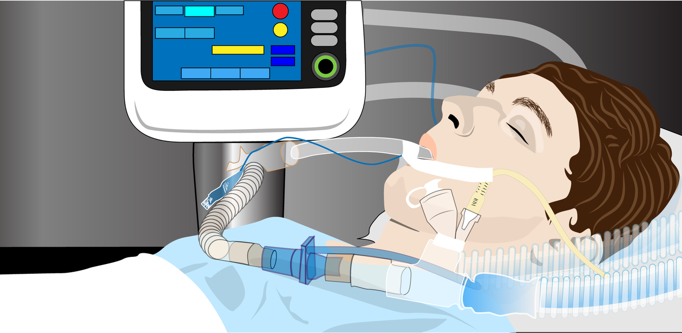 An electronic breathing device used in the treatment of sleep apnea, lung disease, and to treat respiratory weakness.