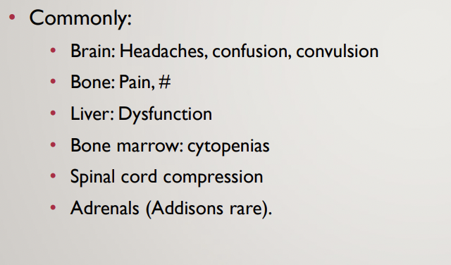 thrombotic events - some tumours create a hyper-coagulable state -> DVTs, Trousseau’s sign